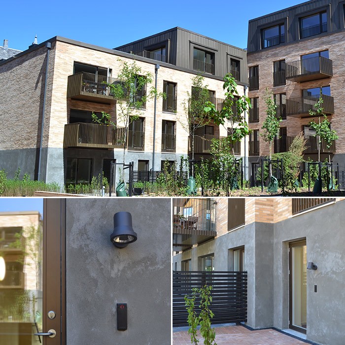 Heiberg Huse består af to flotte arkitektoniske bygninger, som falder flot ind med sine omgivelser, heriblandt Bindesbøll Hus og historiske Frederiksberg. De to bygninger på hhv. 3 og 5 etager tilbyder moderne lyse lejligheder fra 80 m2 op til hele 179 m2. Alle lejligheder har enten forhave, terrasse eller altan. Ved hoveddørene til bygningerne er der installeret Serie 410 dørstationer udført i rustfrit stål, som stemmer overens med bygningernes minimalistiske stil og design. I lejlighederne er der installeret VLux hustelefoner, som gør det muligt for beboerne at se hvem der ringer på ved dørstationen. Ved sekundære døre hænger der Nexus læsere, hvor beboerne får adgang via sin egen personlige brik. Samme brik benyttes på Serie 410 dørstationernes berøringsfri læser.