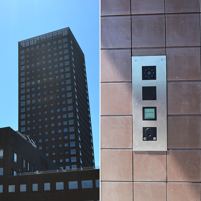 Ved hovedindgangen til Bohrs Tårn er der monteret en MIX dørstation med drejehjul, display-, kamera-, og mikrofonmodul. Drejehjulet gør det nemt at navigere imellem de mange lejligheder på de i alt 29. etager. I dette højhusbyggeri er dørtelefonien udvidet med et Scantron brandkommunikationsanlæg, hvilket gør det muligt at kommunikere til beboere i tilfælde af brand eller evakuering. Dette foregår via et brandmandspanel, som er forprogrammeret til at kunne ringe op til individuelle eller alle beboere via deres SLIM60BT hustelefoner.