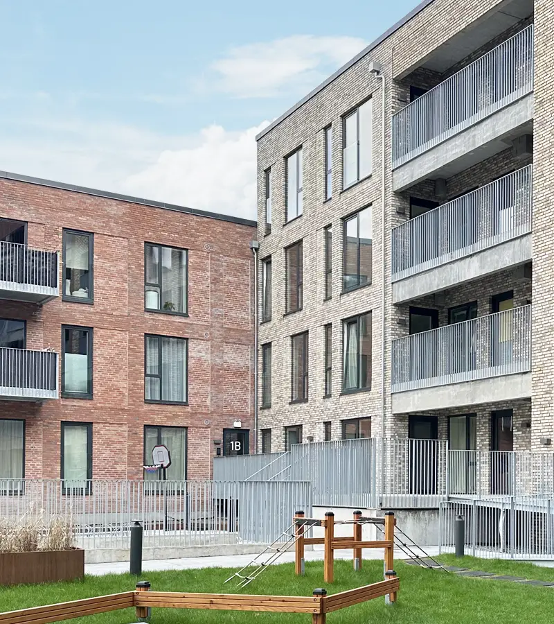 Projektet er udstyret med SAGA IP-dørstationer integreret med MultiApp®, så beboerne kan modtage opkald og åbne døren via smartphone. Derudover er der installeret Nexus M læsere samt EvoLock® offline håndtag, hvilket giver sikker og fleksibel adgang med brik til både fællesarealer og individuelle døre.
